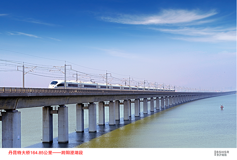 京沪高速铁路全长1318公里,设计速度350km/h。作为国家战略性重大交通工程和重大创新工程,创造了一次建成里程最长、线路标准最高、运行速度最快的世界纪录,代表了中国高速铁路最高技术水平。围绕京沪高速铁路建设,经历了近20年的科研和技术攻关,形成了350km/h高速铁路理论体系,建成了高标准和高平顺性的基础设施、研制了高速铁路重大技术装备、研发了安全运营保障技术等,拥有了自主知识产权的技术和标准。京沪高铁实现了持续高速度、高密度、高安全性运行。