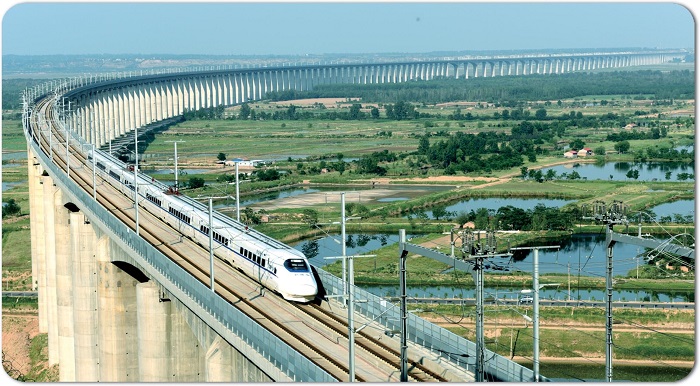 晋陕黄河特大桥由山西省永济市跨越黄河进入陕西省合阳县,起讫里程为:DK701+923.61~DK711+892.79,桥梁全长9.969km,总圬工方约110万方。