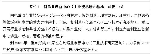完善国家制造业创新体系。加强顶层设计,加快建立以创新中心为核心载体、以公共服务平台和工程数据中心为重要支撑的制造业创新网络,建立市场化的创新方向选择机制和鼓励创新的风险分担、利益共享机制。充分利用现有科技资源,围绕制造业重大共性需求,采取政府与社会合作、政产学研用产业创新战略联盟等新机制新模式,形成一批制造业创新中心(工业技术研究基地),开展关键共性重大技术研究和产业化应用示范。建设一批促进制造业协同创新的公共服务平台,规范服务标准,开展技术研发、检验检测、技术评价、技术交易、质量认证、人才培训等专业化服务,促进科技成果转化和推广应用。建设重点领域制造业工程数据中心,为企业提供创新知识和工程数据的开放共享服务。面向制造业关键共性技术,建设一批重大科学研究和实验设施,提高核心企业系统集成能力,促进向价值链高端延伸。