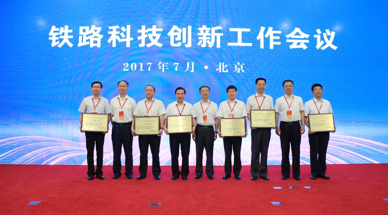 科技部党组书记王志刚同志,中国科协党组成员宋军同志为荣获2015—2016年度铁路优质工程奖单位颁奖