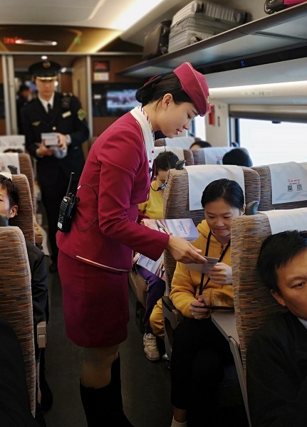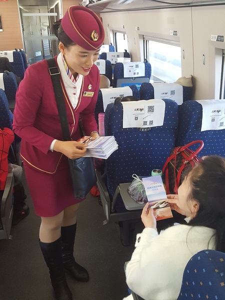 10月24日,国家铁路局组织到石家庄站及往返列车上继续开展“信用铁路宣传月”宣传活动。