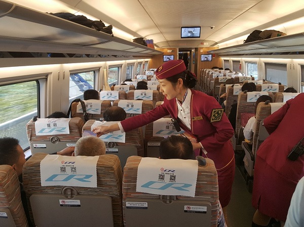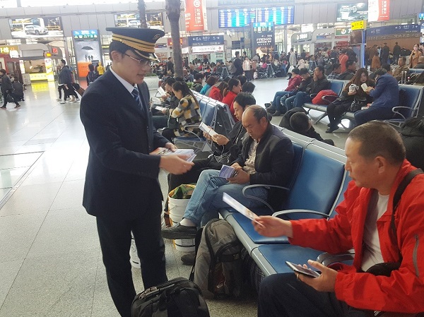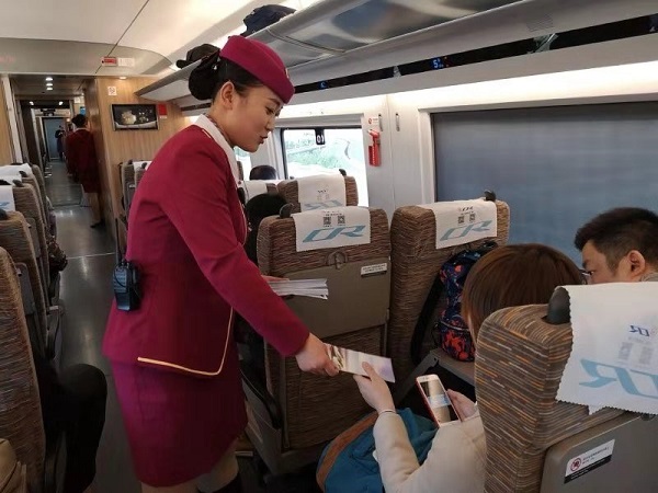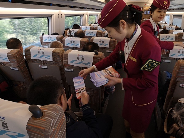 10月26日,国家铁路局组织到天津站及京津城际列车上继续开展“信用铁路宣传月”宣传活动。