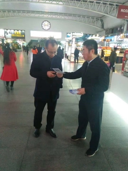 在沈阳北站向旅客讲解铁路信用管理知识