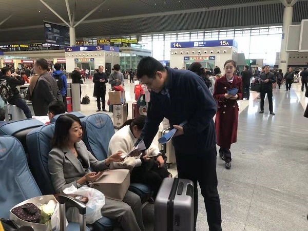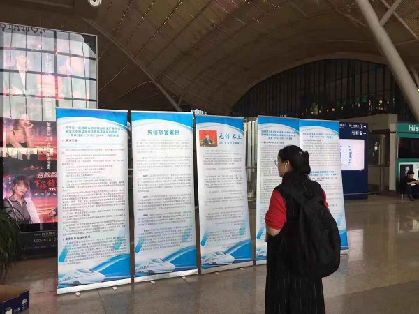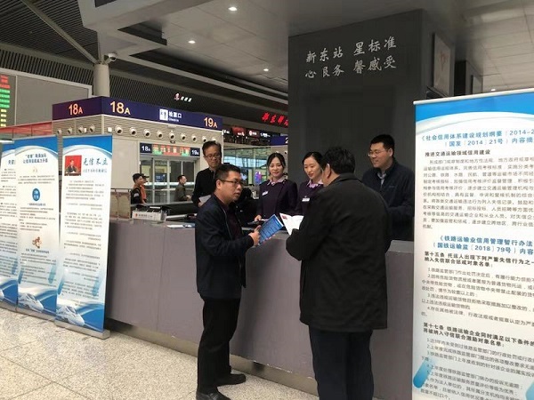 武汉铁路监管局贯彻落实国家铁路局2018年“信用铁路宣传月”活动要求,联合中国铁路郑州局集团有限公司、中国铁路武汉局集团有限公司,在郑州东站、武汉站通过展板展示、发放宣传册等形式,开展“信用铁路在身边”宣传活动,深入推进“学信用、懂信用、用信用、守信用”,维护铁路运输良好秩序。
