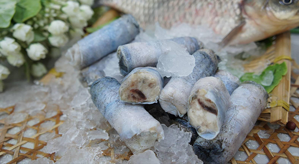鱼皮卷是全鱼宴上常见的一道菜,鱼皮去鳞后剥下来分切好,卷入打好调味的鱼泥上锅蒸熟出锅淋上酱汁即可,鱼皮锁住了鱼肉的鲜美,口感别具一格。