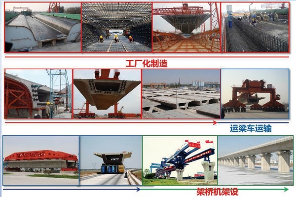3.构建了高速铁路32m标准梁“制造、运输、架设”快速施工成套技术。提出高速铁路简支标准梁桥快速建设模式;创新高速铁路整孔简支箱梁建造技术;创新整孔箱梁运架工艺控制技术与标准;建立了标准梁桥变形过程控制与评估技术,形成了高速铁路标准梁桥“先架后铺”的建造模式。