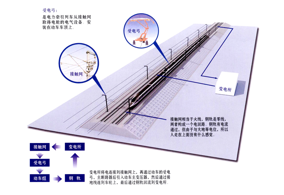 高速铁路牵引供电系统负责将电能从国家电网安全可靠的输送到动车组上,为动车组高速运行持续提供强大的电能。主要由牵引变电所、接触网、数据采集与监视控制系统(SCADA)三大部分组成。