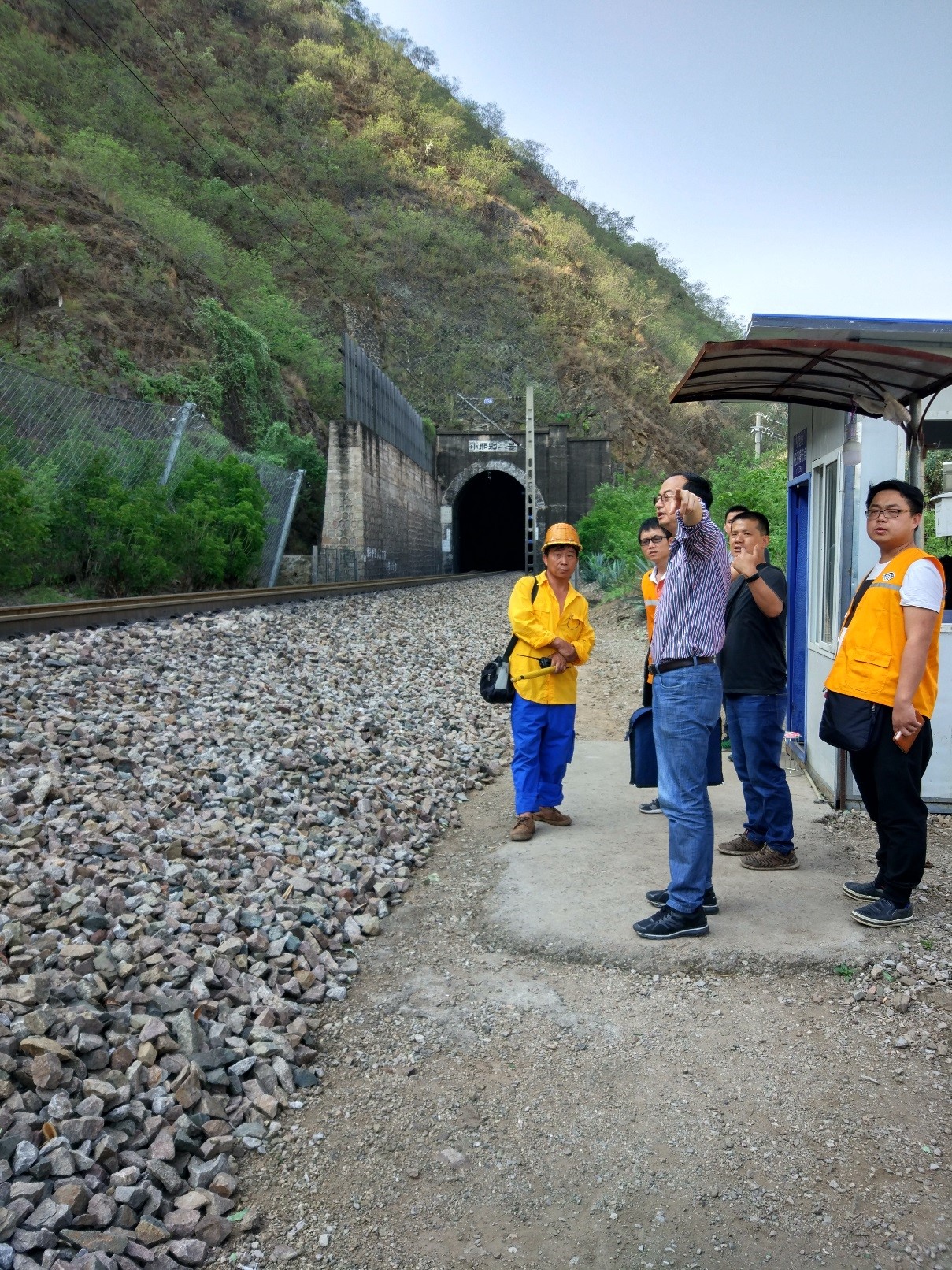 图为检查组现场检查昆明铁路局广通电务段Ⅰ级防洪点。