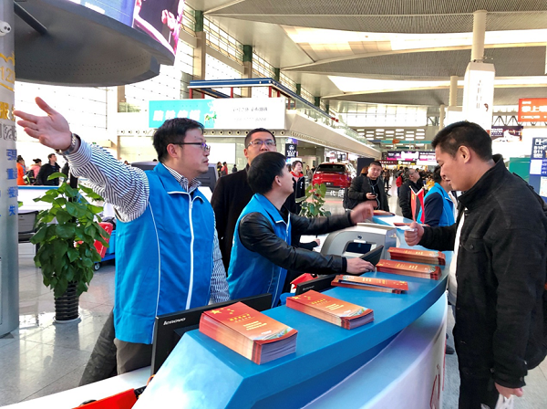 12月4日,成都铁路监管局开展以“尊崇宪法、学习宪法、遵守宪法、维护宪法、运用宪法”为主题的第五个国家宪法日普法宣传活动,派出工作人员在成都东站西广场、候车大厅面向旅客开展现场宣传咨询。活动重点宣传了习近平总书记关于全面依法治国的新理念新思想新战略、2018年宪法修正案的核心要义和精神实质以及铁路安全法律法规等内容。