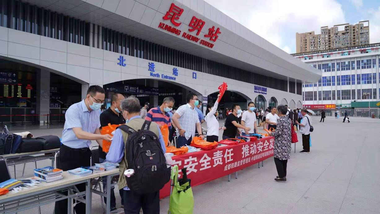 暨铁路沿线安全环境治理宣传活动。按照《国家铁路局综合司转发国务院安委会办公室 应急管理部关于开展2021年全国“安全生产月”活动的通知》要求,结合党史学习教育年轻干部“服务群众 服务基层”志愿活动,成都铁路监督管理局联合辖区“三省一市”交通、住建、应急、护路办及集团公司等单位积极开展 “6·16”全国安全宣传咨询日暨铁路沿线安全环境治理宣传活动。活动以“落实安全责任,推动安全发展”、“维护铁路沿线环境,保障人民安全出行”为宣传主题,在成都东站、重庆北站、贵阳北站、昆明站等大站设立宣传点,现场发放宣传资料、咨询解答、知识抢答、表演文艺节目等,并在成铁微家园、西南铁路等微信、微博进行多媒体宣传,共发放宣传资料4万余份,微信微博点击率上万。通过向群众宣传铁路隐患事故案例、铁路安全常识等,解答群众关心的铁路安全生产问题,促进铁路安全法律法规的普及,提升群众主动规避危险的能力,努力营造“爱路护路、人人有责”浓厚的铁路安全生产氛围。