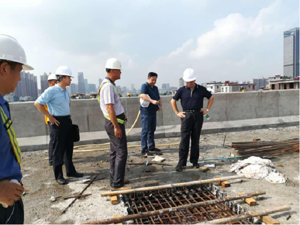 图为检查组现场检查广梅汕铁路龙湖南至汕头增建二线框架桥施工安全质量。