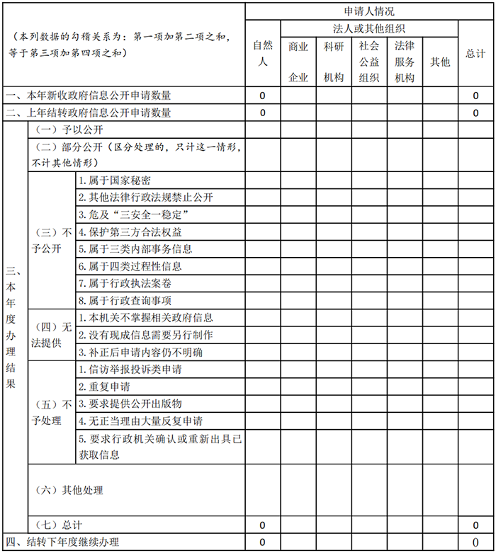 三、收到和处理政府信息公开申请情况
