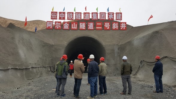 图为检查组在新建格库铁路阿尔金山隧道检查施工安全情况。