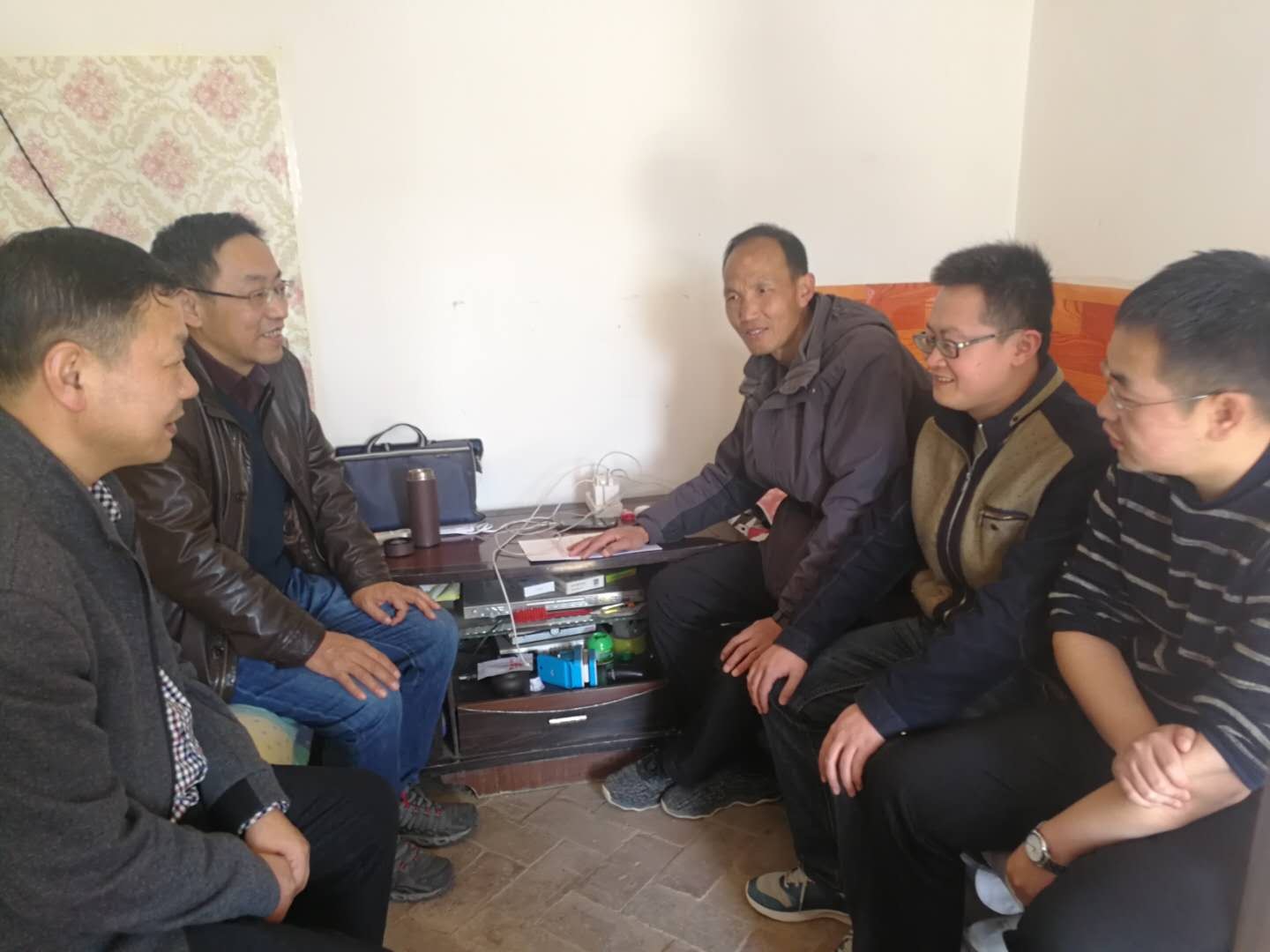 图为邢斌与驻村帮扶干部座谈交流