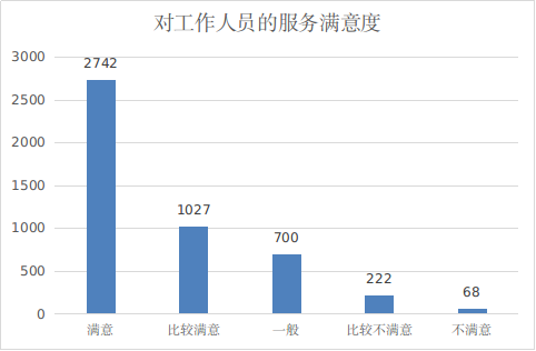 对于工作人员服务,57.62%旅客选择“满意”,21.58%旅客选择“比较满意”,旅客较为不满、认为需要改善的主要集中在厕所卫生等方面。详见图4。