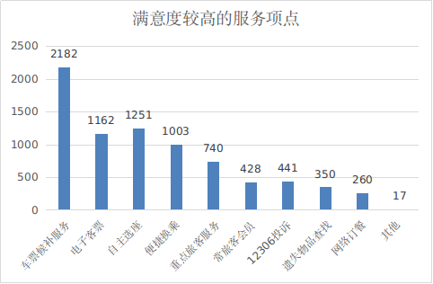 旅客满意度较高的项目有车票候补服务、自主选座和电子客票等方面。详见图5。