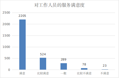 对于工作人员服务,70.7%旅客选择“满意”,16.8%旅客选择“比较满意”,旅客较为不满、认为需要改善的主要集中在厕所卫生方面。详见图3。