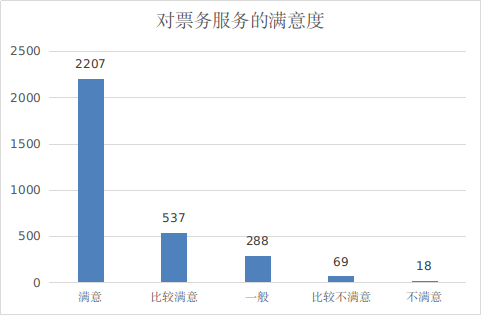 3.问卷调查情况分析。本季度问卷调查中,对于票务服务,70.76%旅客选择“满意”,17.22%旅客选择“比较满意”,旅客较为不满、认为需要改善的主要集中在改签、取票和取票方面。详见图2。