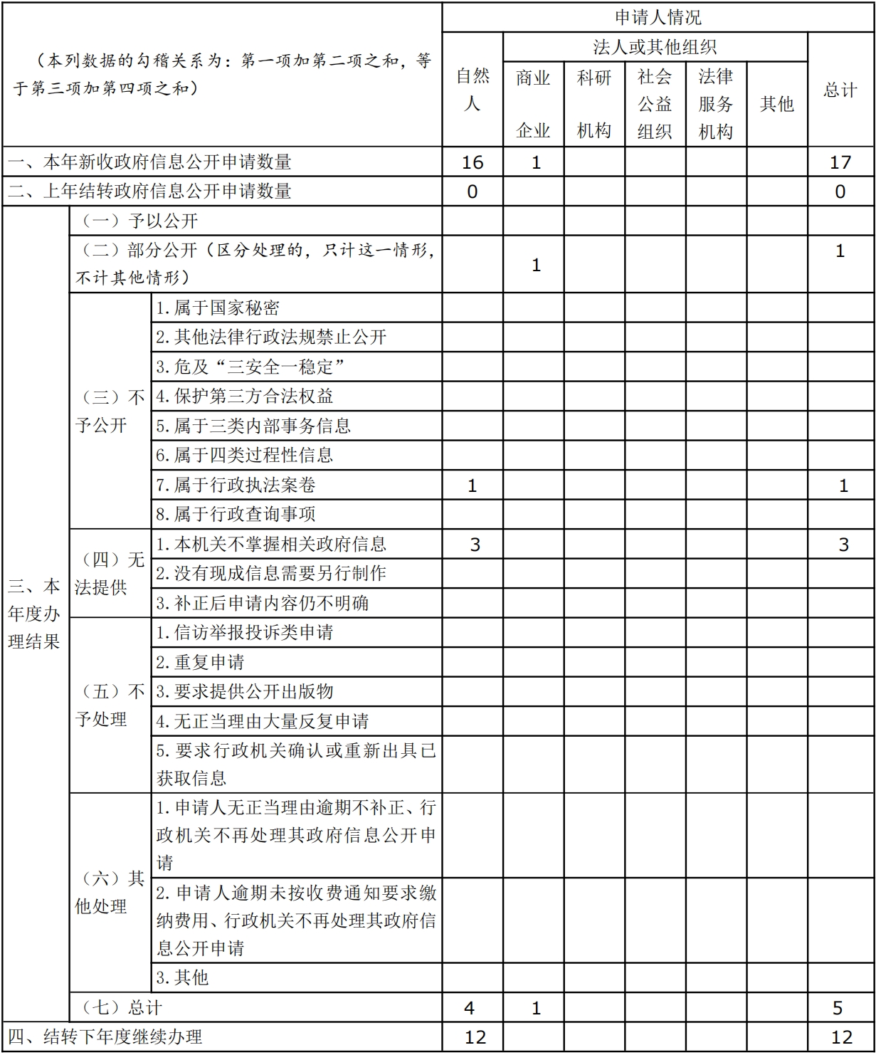 三、收到和处理政府信息公开申请情况