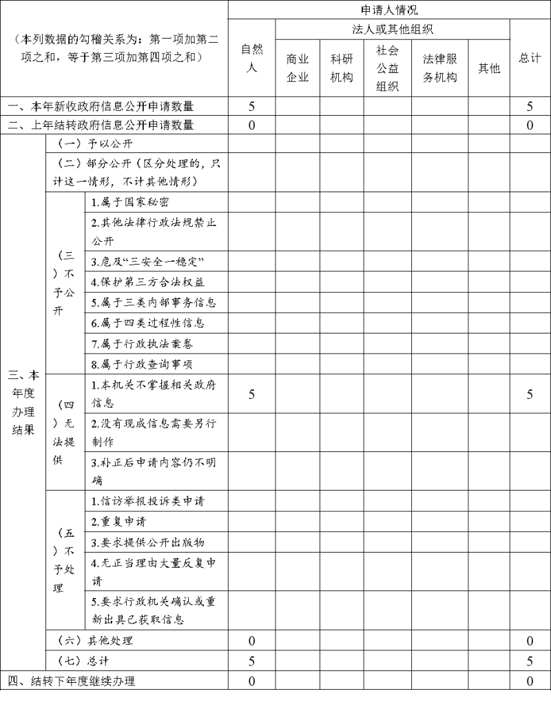 三、收到和处理政府信息公开申请情况