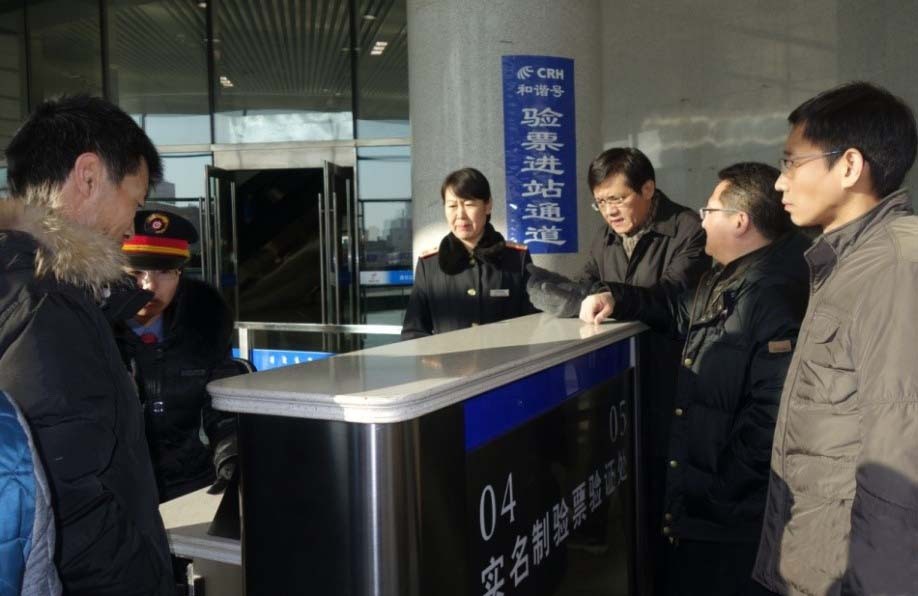 图为检查组在呼和浩特站检查实名制验票验证和安检查危情况。