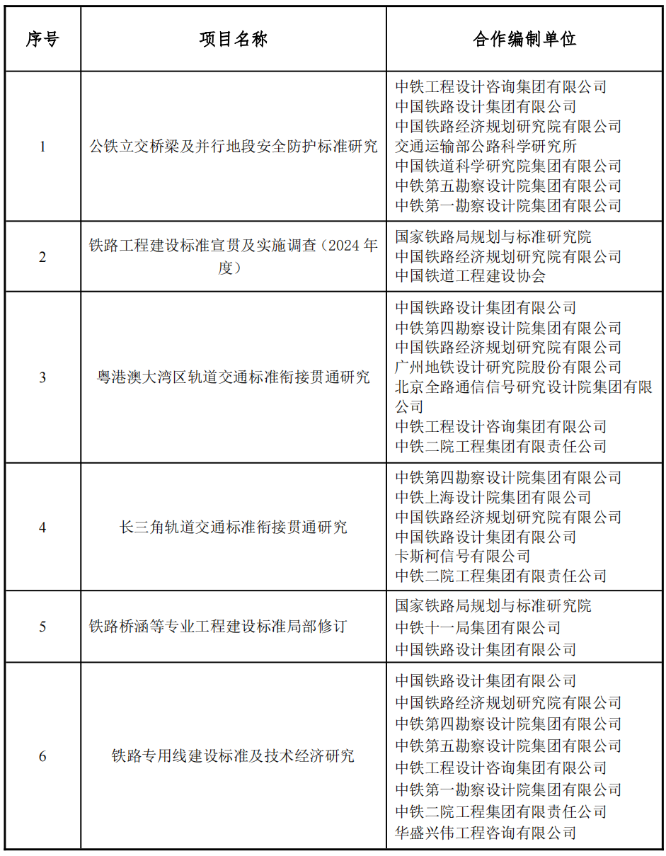 国家铁路局规划与标准研究院2024年铁路工程建设标准项目合作编制单位选择方案公示